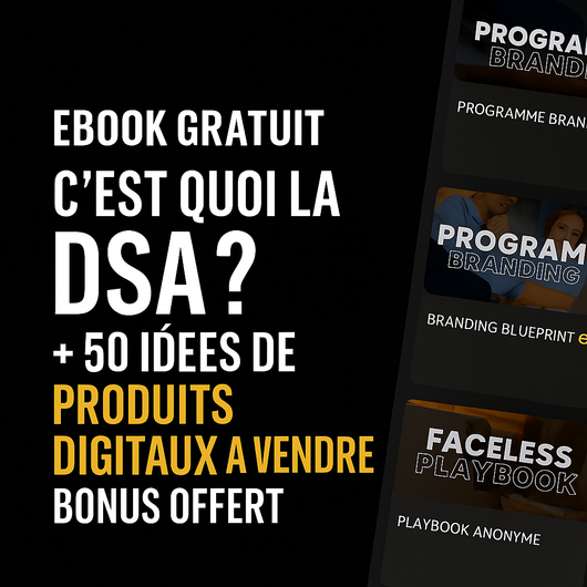 Ebook Gratuit + Bonus : Découvre ce qu’est la DSA & 50 Idées de Produits Digitaux Rentables